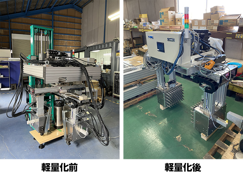 業種に合わせた、軽量化を検証するため、多種の重量物のホールドキャッチ検証実験を行い、以下の項目を改造、撤去しました。
