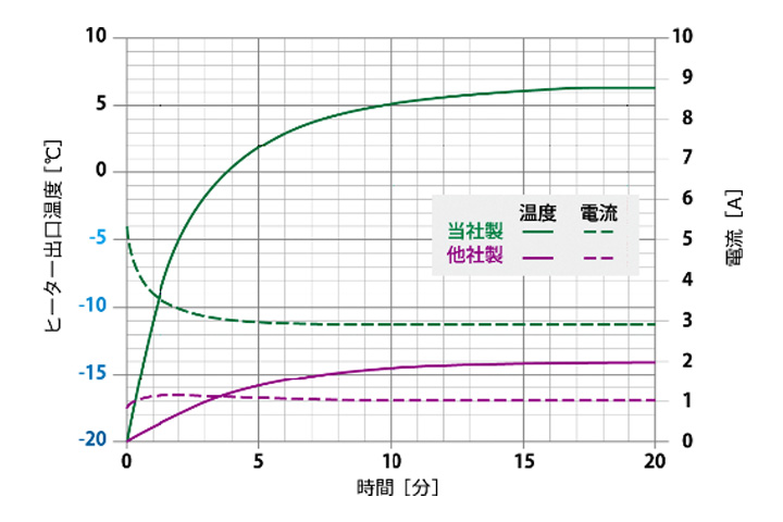 - メリット 設定温度のヒーターを使用することで、温度制御回路が無くても一定温度をキープでき、ローコスト、信頼性の向上につながります。
