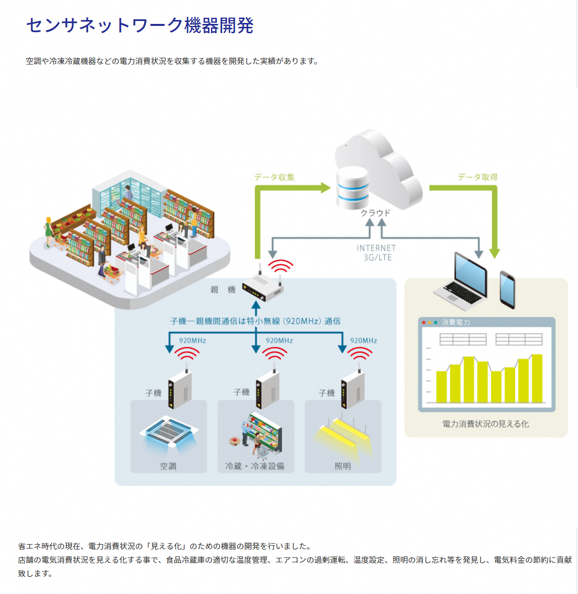 電子回路設計・基板設計・ソフト開発・無線通信技術により、様々なセンサーネットワーク(IoT)を実現