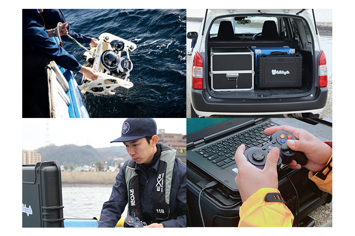・船上との通信は直径3.7mmの超極細光ケーブルを使用し、潮流の抵抗を受けにくいので、水中における抜群の機動力と安定性を実現します。