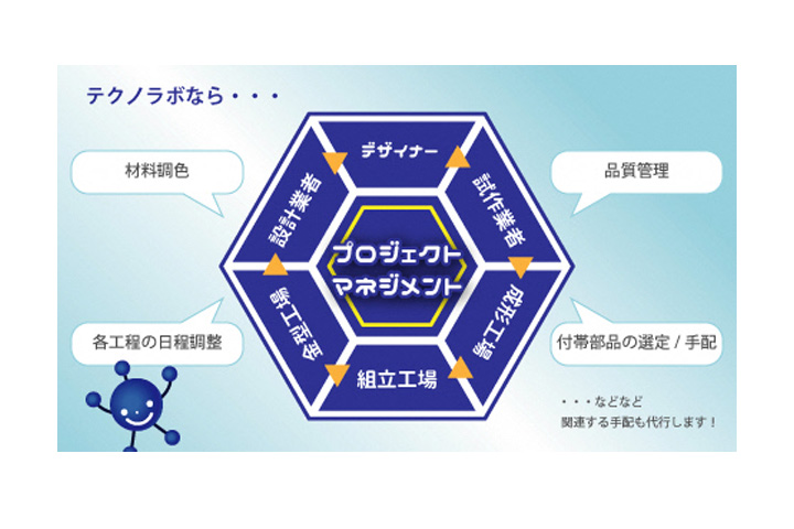 少量(50~500程度)での製品製造が中心の会社です。デザインから製品設計、部品へのブレイクダウン、電気部品との調整、組立のライン構築、梱包パッケージまで、当社のように一貫して対応する業者は日本国内では余りありません。