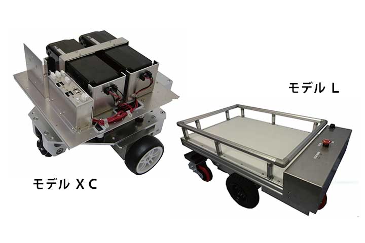 移動型ベースロボット(SCIBOT)は、様々なサービスロボットに利用できる駆動ユニット型ロボットシステムです。モデルXCは横440mm×縦520mmのサイズで、50Kgまでの機器積載が可能です。前後輪にオムニホイールを採用しており、定点回転や傾斜角度10 度の登坂、段差20 ㎜の乗り越えなどが可能です。モデルLは横600mm×縦1000mmのサイズで、200Kgまでの機器や貨物を搭載することが可能です。ご要望に応じたカスタマイズも行います。