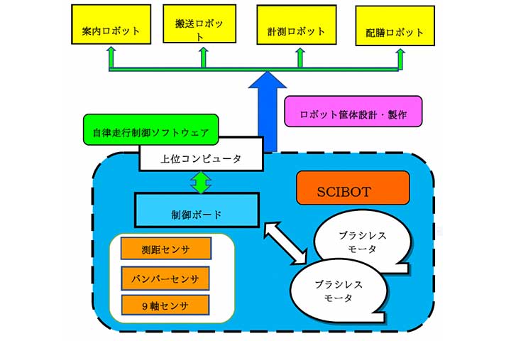 - 移動型ベースロボット(SCIBOT)と移動型サービスロボットの開発