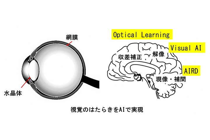 - 遠くも近くも鮮明に、AIを用いた「被写界深度制御技術Visual AI」:ステレオカメラなどの距離計測手段とOptical Learning®を組み合わせることにより、人の目のように遠くも近くも写し出す画像を創ります。