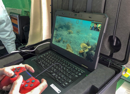 ロボットからの映像はインターネット経由でリアルタイムで確認することができます。水中調査を遠隔地にいるメンバーと確認しながら進めることができます。