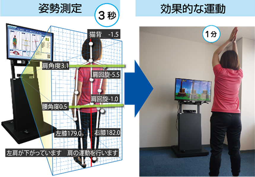 - 3秒で姿勢測定「ケアピっと」から、楽しく運動指導(TANOTECH株式会社)