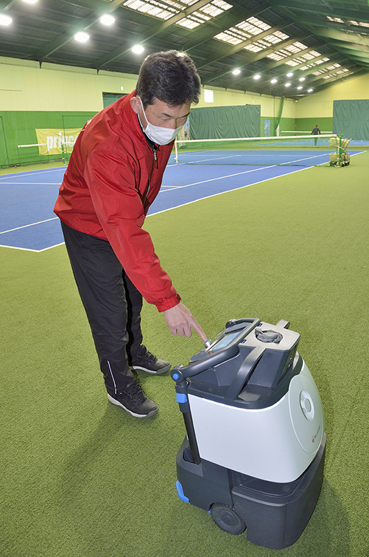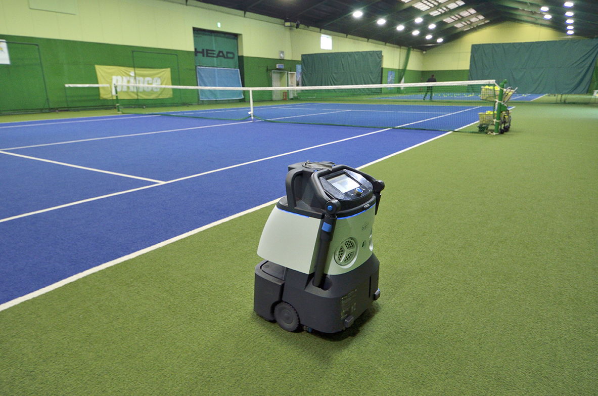 相模原インドアテニススクールの規模は地域最大級でコートが5面あるので、清掃に時間がかかるという課題がありました。それまで使っていた業務用掃除機は手押しで動かすタイプだったので、人件費もかかっていました。さらに人工芝のテニスコート特有の問題で、ゴミの9割を占めるのがボール表面のフェルト繊維なのですが、これが絡みついて取れにくいというのも悩みの種でした。