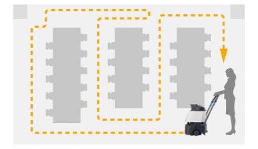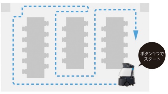 乾式の自律走行型清掃ロボットで、隅々までの吸塵清掃により浮遊菌やウイルスを除去します。HEPAフィルターにより空気中の浮遊菌量を最大1/5まで低減させ、衛生環境の向上にも最適です。また、操作はシンプルで、初回のティーチング後はボタンひとつで稼働し、施設の業務効率化と清掃品質向上に貢献します。